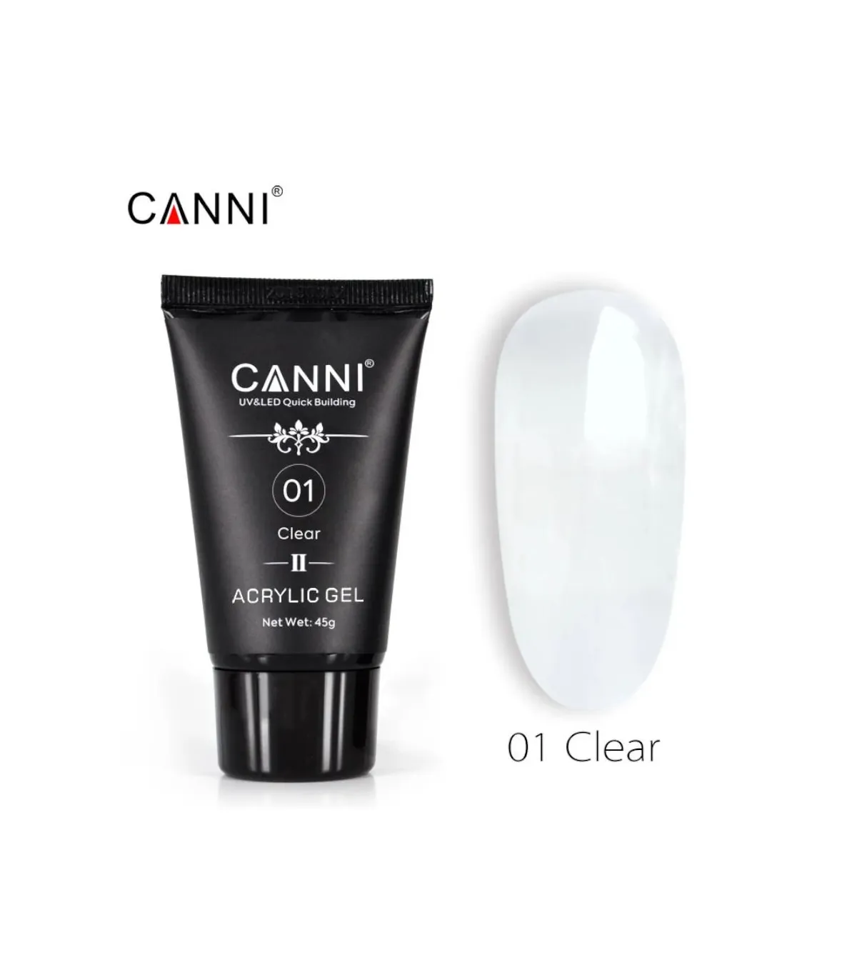 El Acrylic Gel 45gr CANNI color Clear 01, es más ligero que los acrílicos y los geles de construcción tradicionales aporta más resistencia, más flexibilidad ofreciendo una gran durabilidad.