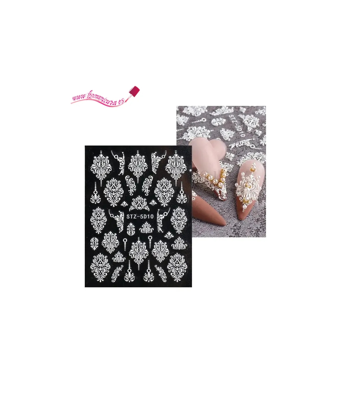Las pegatinas de uñas 5D autoadhesivas blancas obtendrás pegatinas con motivos con relieve que transformarán rápidamente tus uñas en grandes obras de nail art.