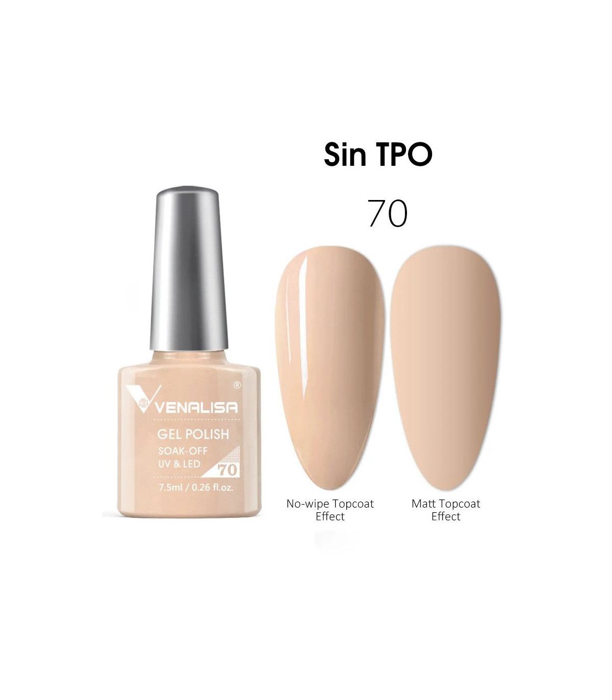 Esmalte semipermanente Sin TPO 7,5ml Nº 70 (Skin Color) VIP2 de Venalisa formulación es impecable, pincel ideal para su aplicación en las uñas y color con muy alto en brillo.