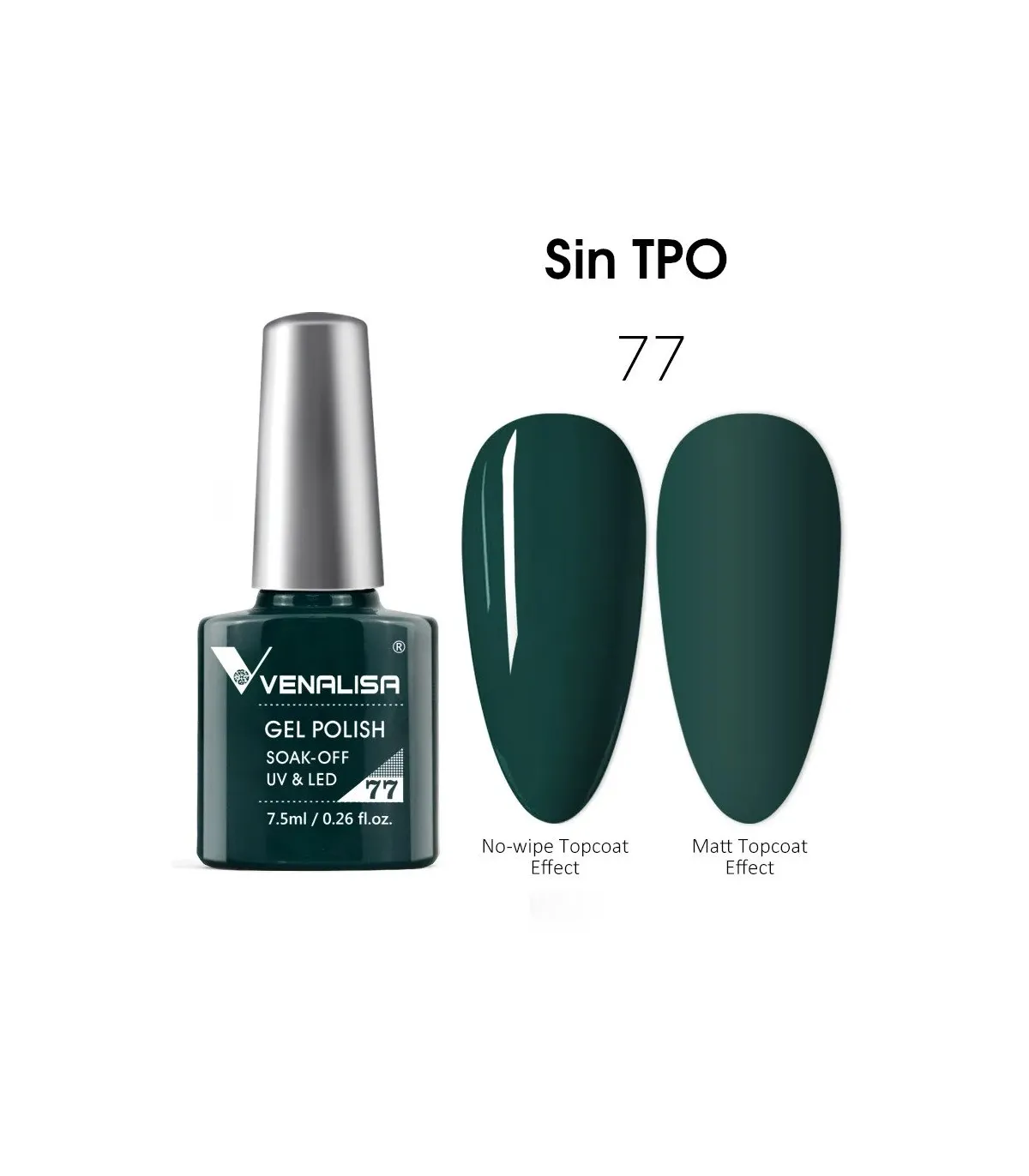 Esmalte semipermanente Sin TPO 7,5ml Nº 77 (Dark Green) VIP2 de Venalisa formulación es impecable, pincel ideal para su aplicación en las uñas y color con muy alto en brillo.