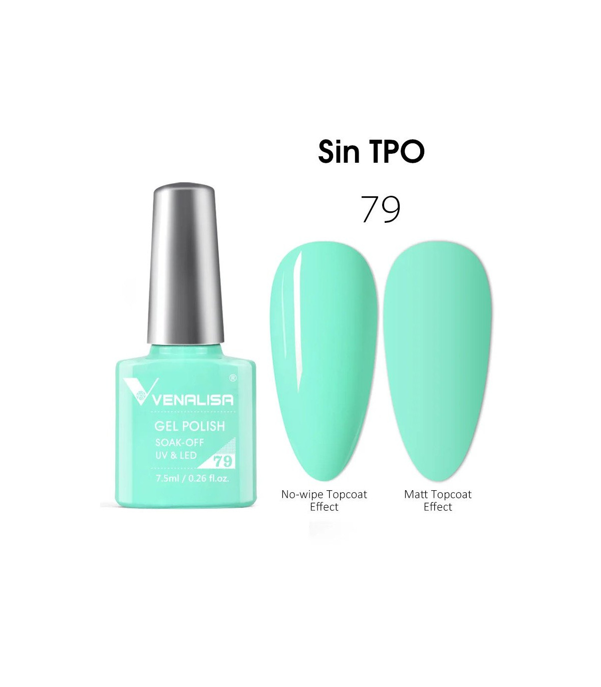 Esmalte semipermanente Sin TPO 7,5ml Nº 79 (Tiffany Green) VIP2 de Venalisa formulación es impecable, pincel ideal para su aplicación en las uñas y color con muy alto en brillo.