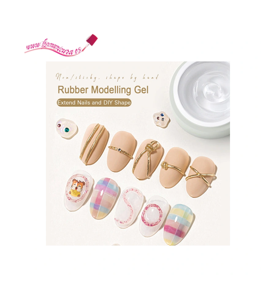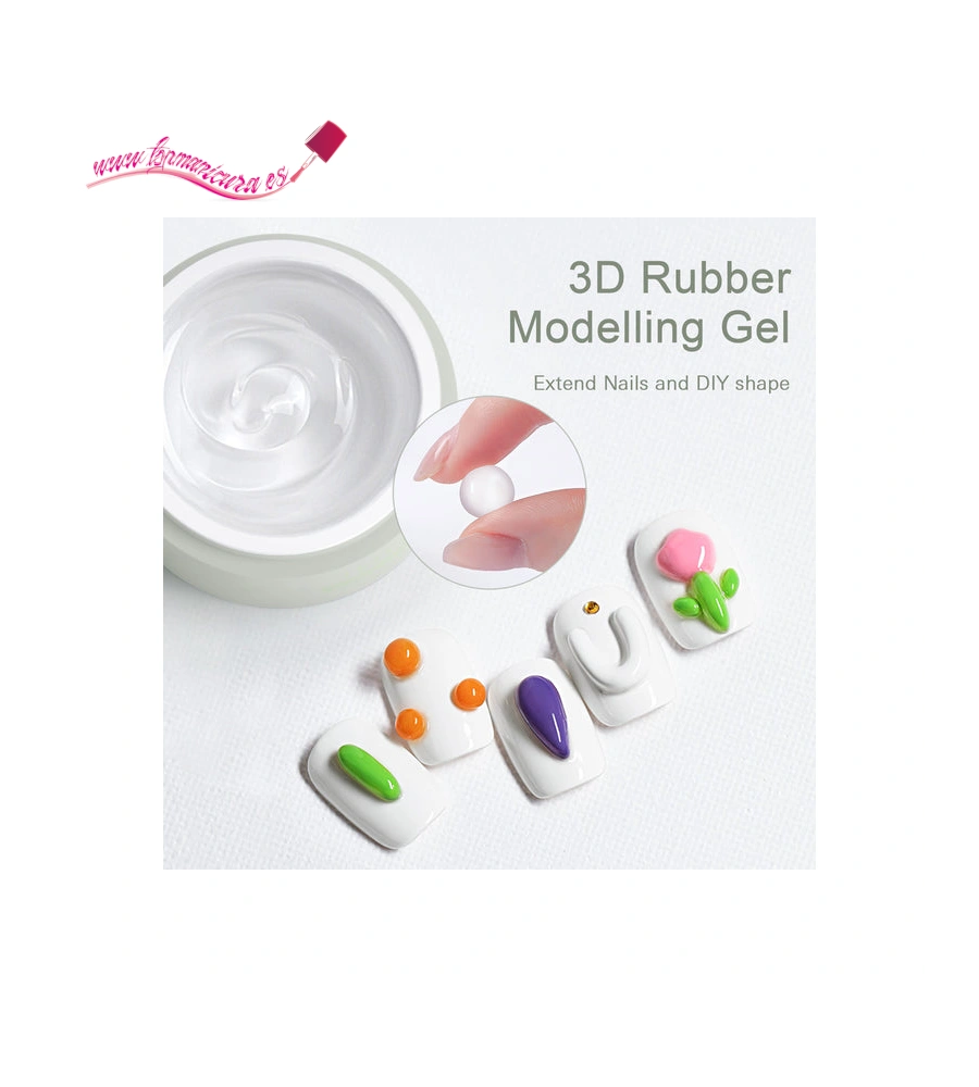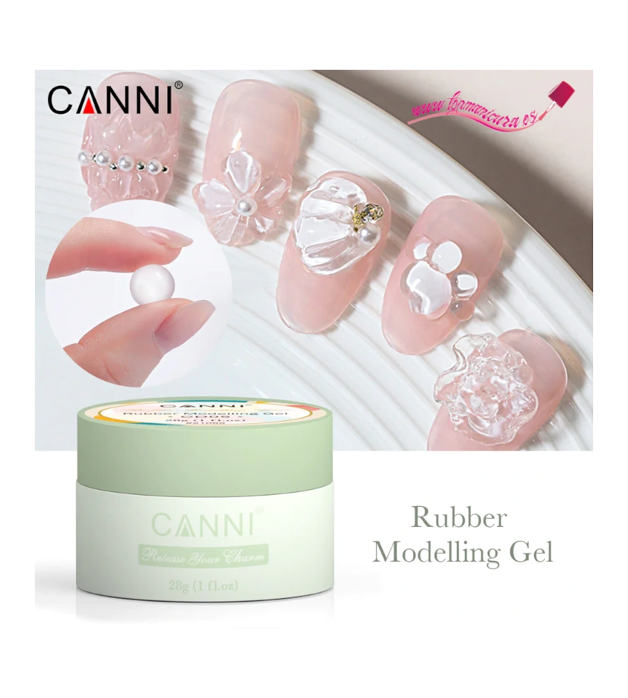 El Gel 3D Rubber Modelling fabricado por CANNI es perfecto para realizar decoraciones en volumen sobre uñas o sobre esmaltado permanente. Gracias a su textura de plastilina elástica y moldeable permite crear diseños de bajo relieve como crochet o puntillas o de alto relieve como flores y diseños en 3D.