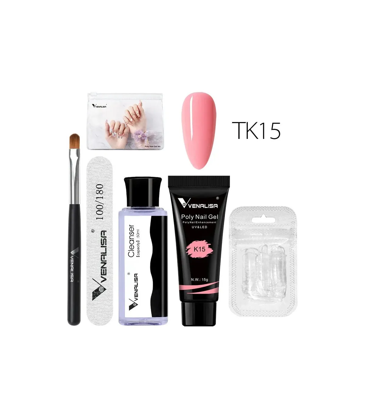 El kit TK15 polygel 15gr de Venalisa está todo incluido, tendrás a tu disposición todos los productos necesarios reconstrucción de uñas, para que tu experiencia de manicura con polygel sea sencilla y efectiva.