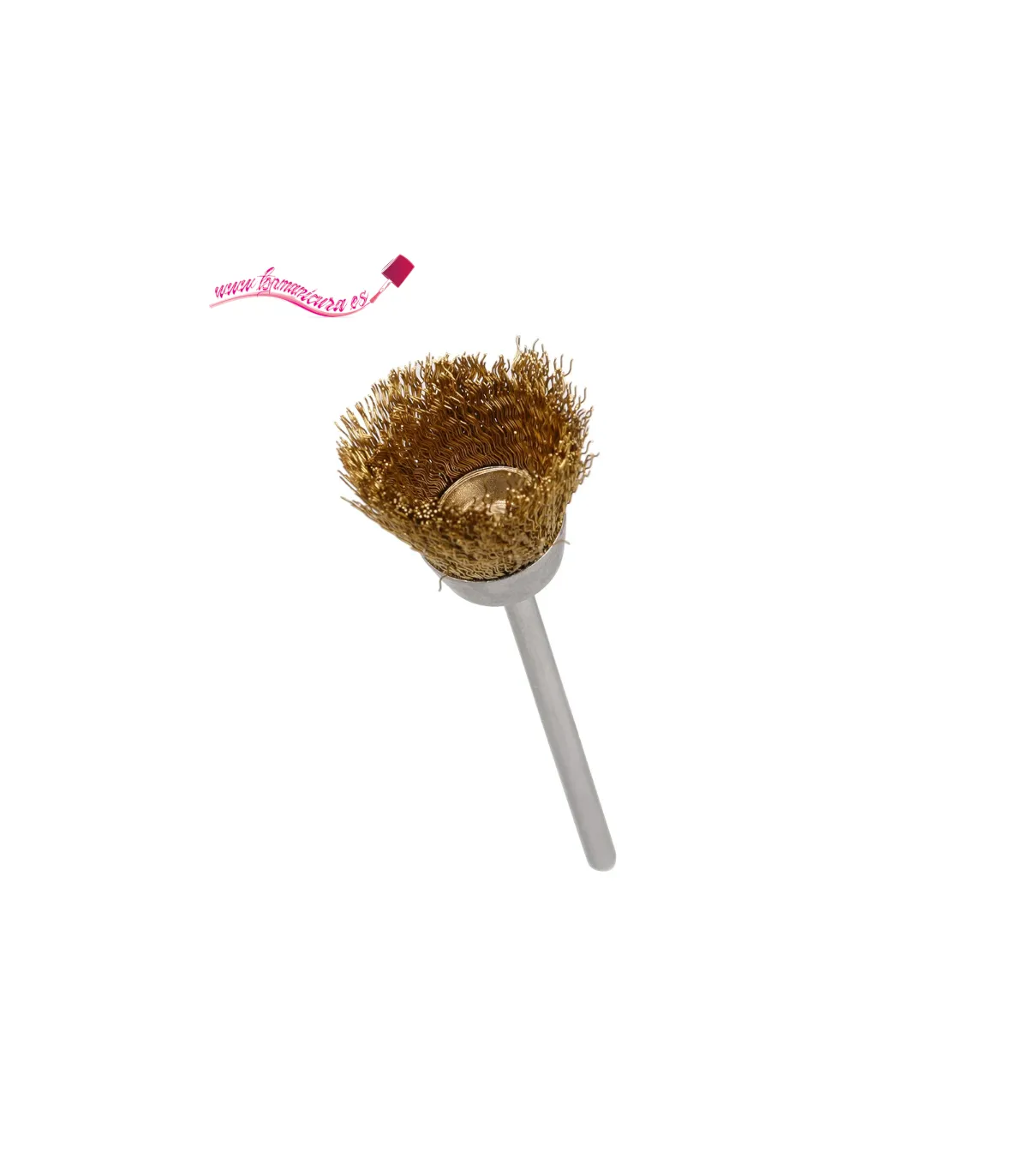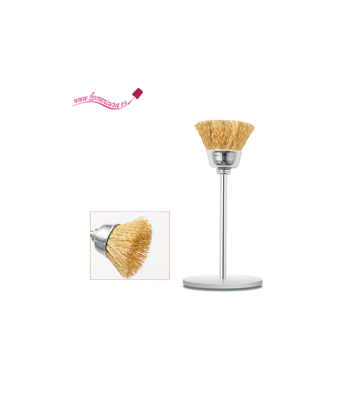 Fresa para limpiar las fresas de uñas, fabricada en alambres de acero (dorado) es perfecto para limpiar las fresas de uñas de carburo, zafiro, cerámica o diamante. Se usa para desincrustar materia adherida en el instrumento y dejarlo como nuevo.