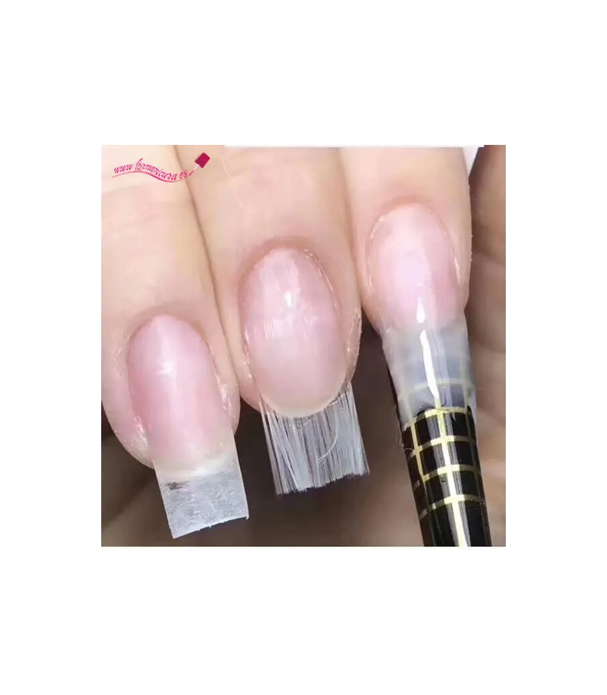 La fibra de vidrio para uñas se fijan sobre las uñas. Se emplea el gel constructor, es una técnica que se tiene en cuenta la forma de las uñas, ya que el resultado quedara adaptado a ellas.