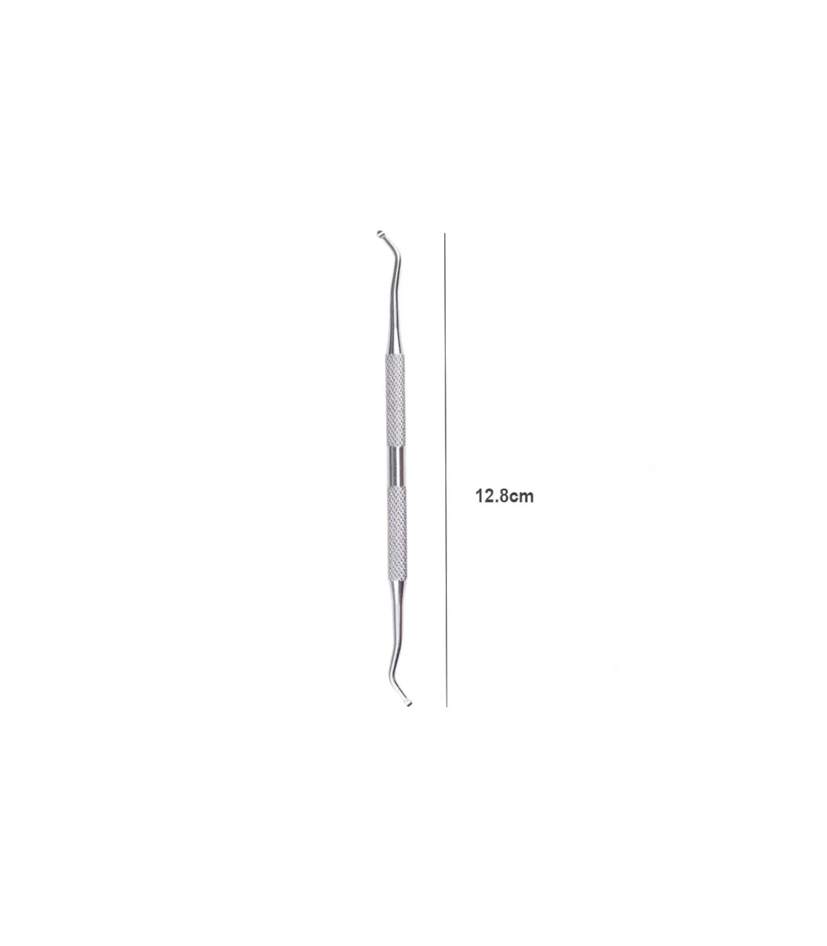 El empujador de pedicura esta fabricado de acero inoxidable quirúrgico con dos puntas. En un extremo tiene un gancho a derechas y en el otro un gancho a izquierda. Perfecto para pedicuras con uñas encarnadas.