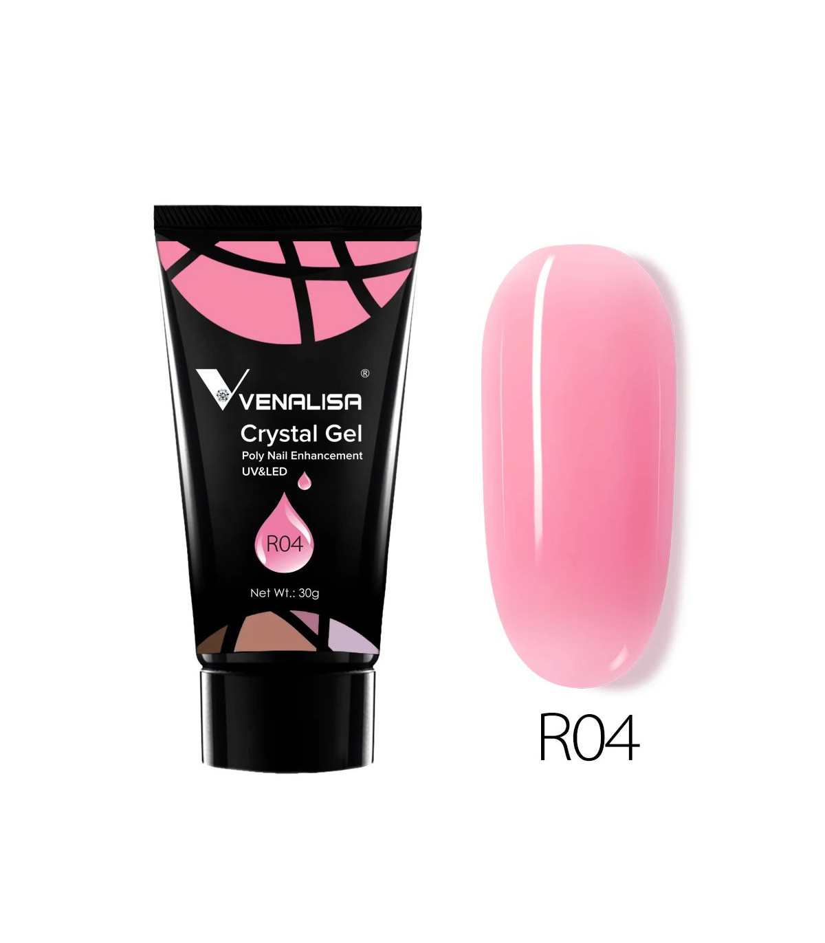 El Polygel Crystal R04 30g de Venalisa es de alta calidad que combina las mejores propiedades del gel y del acrílico, es conocido como Acrygel o Poligel.