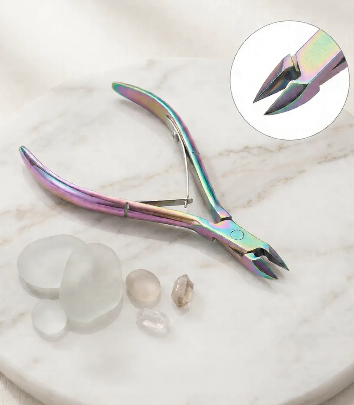 Alicates corta cutículas, herramienta de manicura indispensable, que nos ayudara a desprendernos de la cutículas, proporcionando un corte limpio y preciso que evitan dañar la piel y producir heridas.