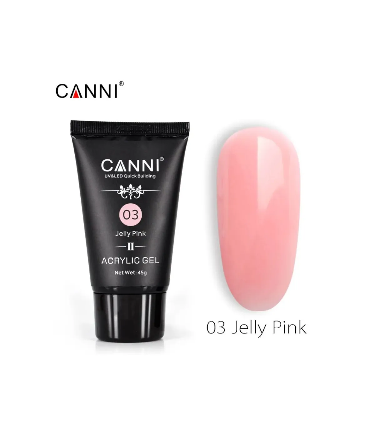 El Acrylic Gel 45gr CANNI color Jelly Pink 03, es más ligero que los acrílicos y los geles de construcción tradicionales aporta más resistencia, más flexibilidad ofreciendo una gran durabilidad.