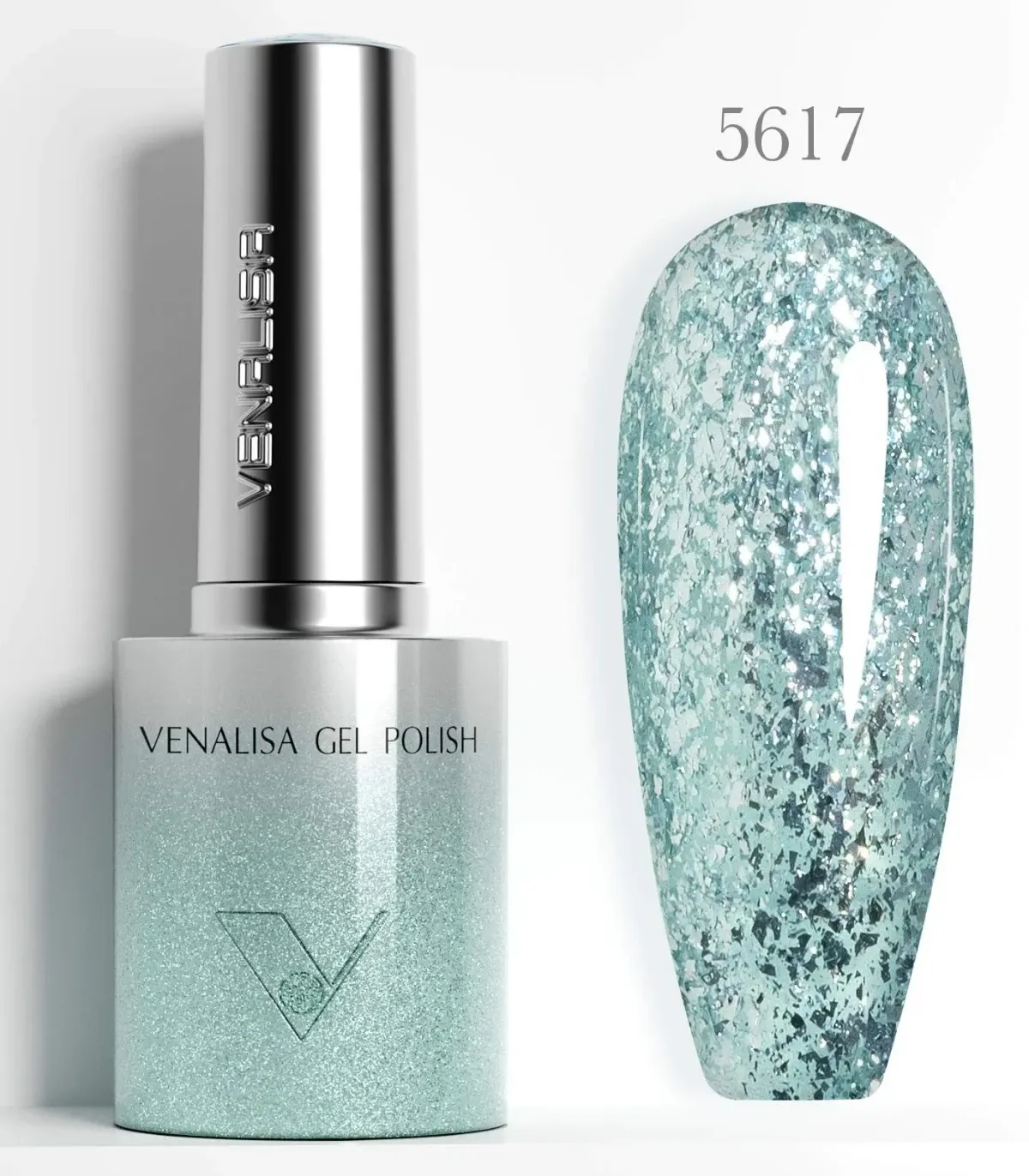 Esmalte 5617 Semipermanente Glitter Venalisa 10ml de calidad profesional. Disfruta de una manicura brillante con purpurina y una fórmula avanzada HEMA-Free (sin HEMA, TPO, ni HPMA). Cobertura perfecta, secado rápido LED/UV y larga duración de hasta 3 semanas. La elección más segura para uñas sensibles.