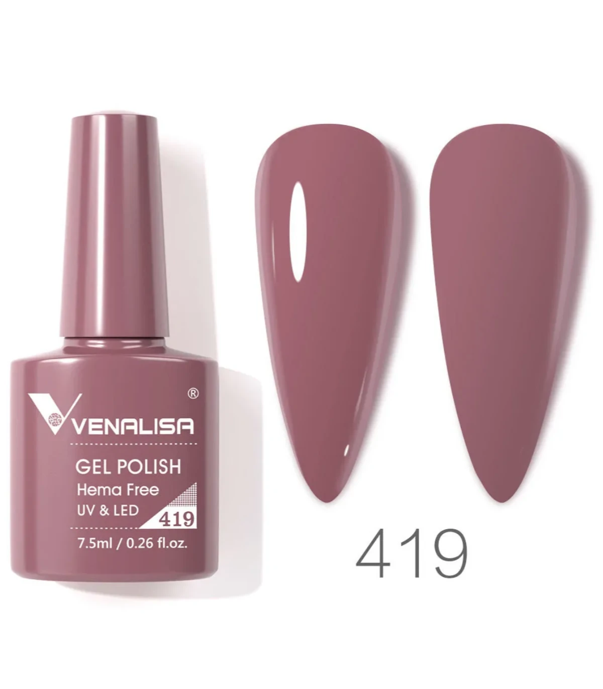 Esmalte semipermanente 7,5ml SIN HEMA Nº 419 VIP4 de Venalisa, la elección perfecta para personas con sensibilidad a los esmaltes permanentes, preservar la salud natural de las uñas y evitar daños.