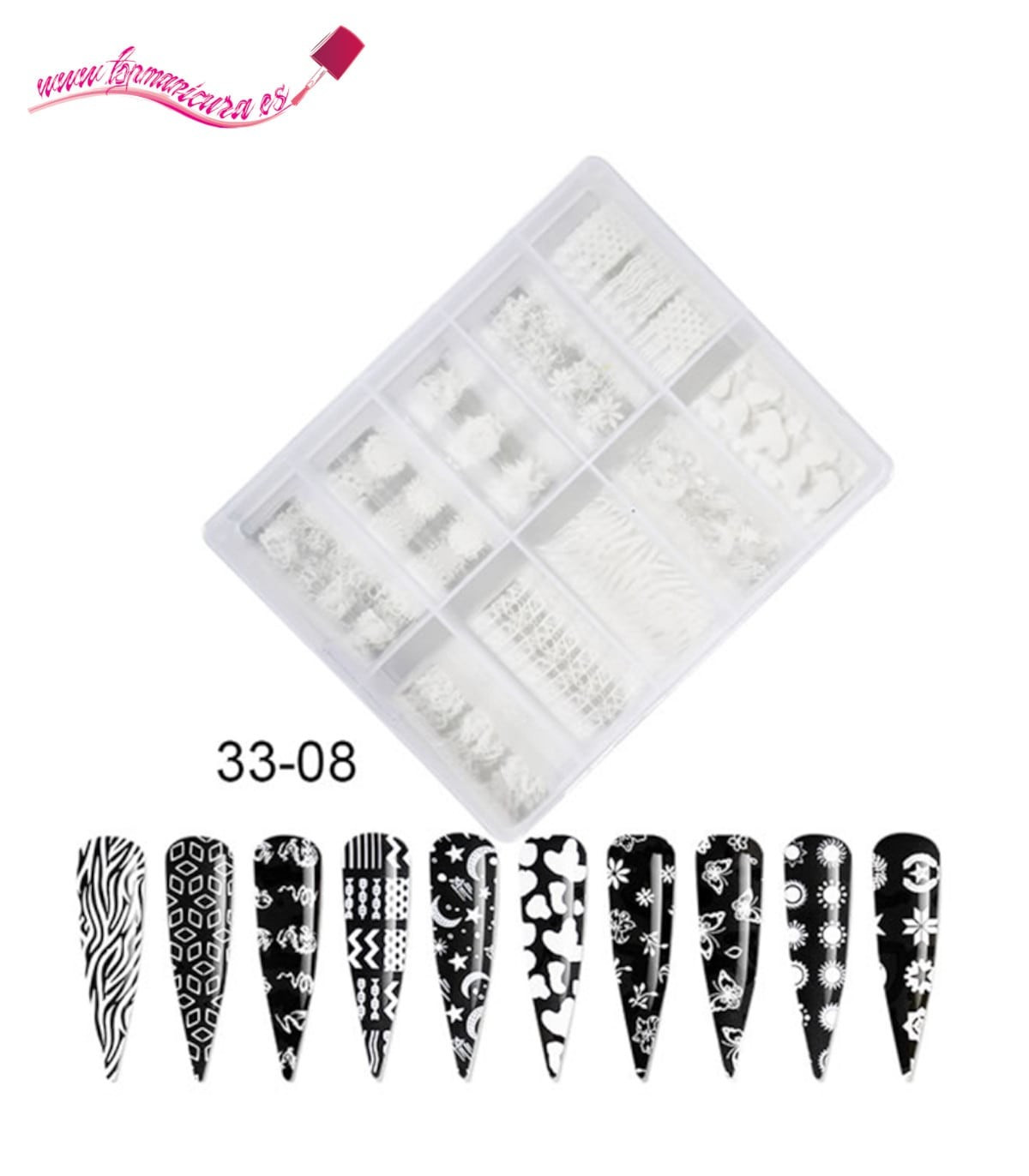 El pack 10 foil uñas blanco & negro contiene 10 modelos de foil de uñas elegante y hermosa cada modelo tienes 100 cm. Son ideal tanto para nail art como para crear trabajos de manicura hermosos.
