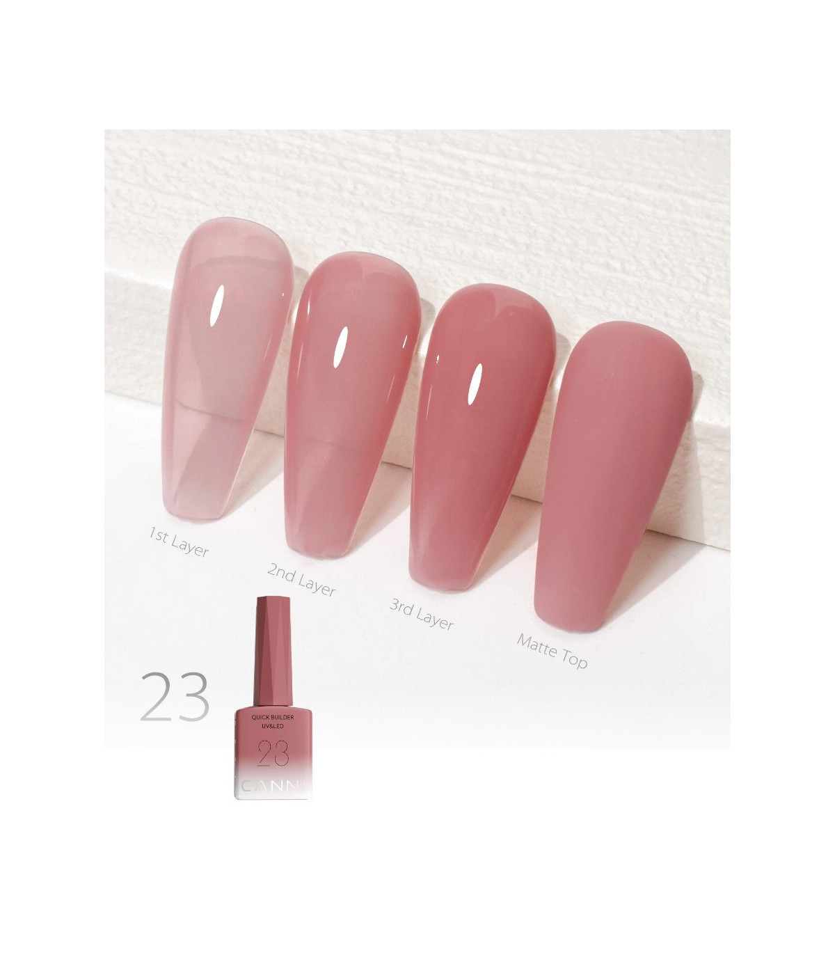 Gel constructor rápido X23 de CANNI es ideal para trabajar sobre la uña natural o con molde, y permite realizar manicuras resistentes, con volumen y un acabado sutil y pulido, sin necesidad de aplicar esmalte permanente después. Este gel constructor en formato botella con pincel de 9ml permite una aplicación precisa y rápida.