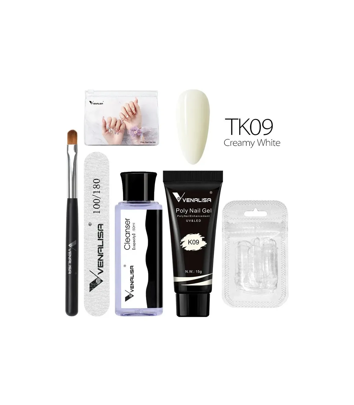 El kit TK09 polygel 15gr de Venalisa está todo incluido, tendrás a tu disposición todos los productos necesarios reconstrucción de uñas, para que tu experiencia de manicura con polygel sea sencilla y efectiva.