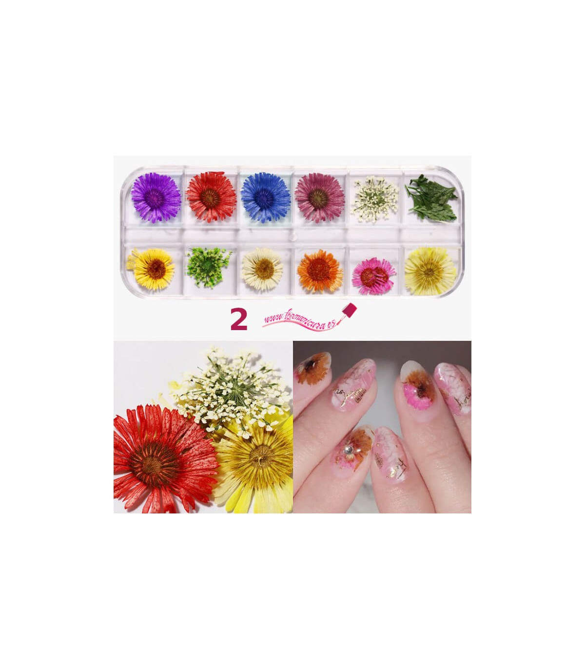 kits de flores secas para uñas son flores naturales sin colorantes, cada caja tiene una flor seca que se pueden abrir por separado, fácil de usar y mantener la flor seca para uñas en el interior limpia.
