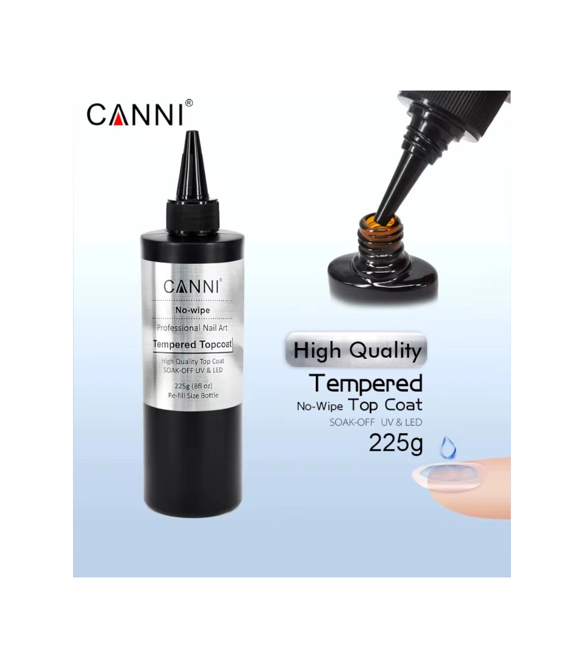 La Capa superior Tempered Top 225 gr Venalisa con efecto de vidrio templado. Tiene amplia variedad de características como dureza, brillo espectacular, transparencia, buena resistencia a los rasguños y golpes. Con el Tempered Top 225 gr Venalisa podrás utilizarlo con gel o acrílico con esmalte semipermanente hacer que los esmalte no se cuartee o quiebre.